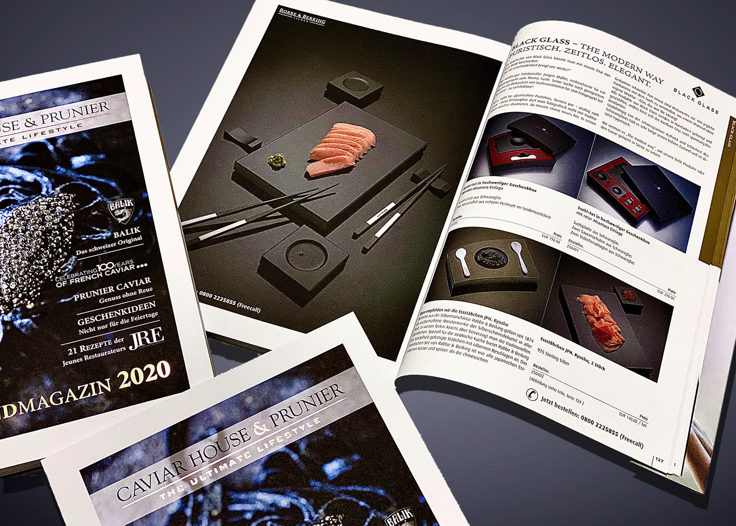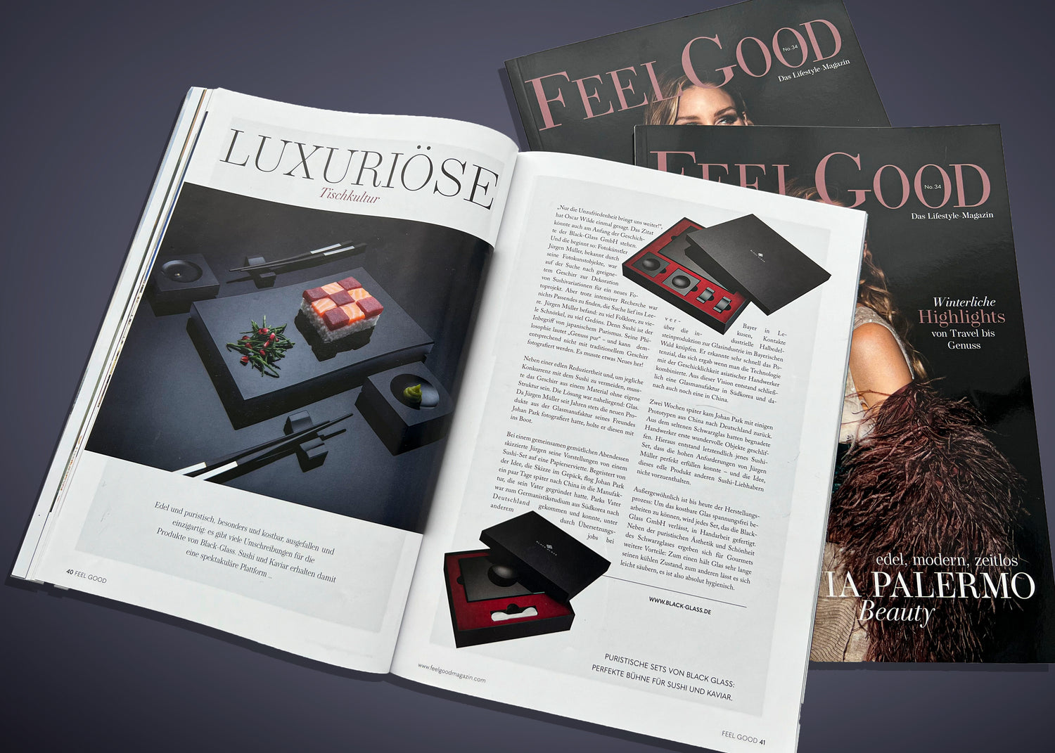 Das exklusive Lifestyle Magazin präsentiert seinen Lesern das Sushi-Set und das Kaviar-Set von Black Glass, vielen Dank!